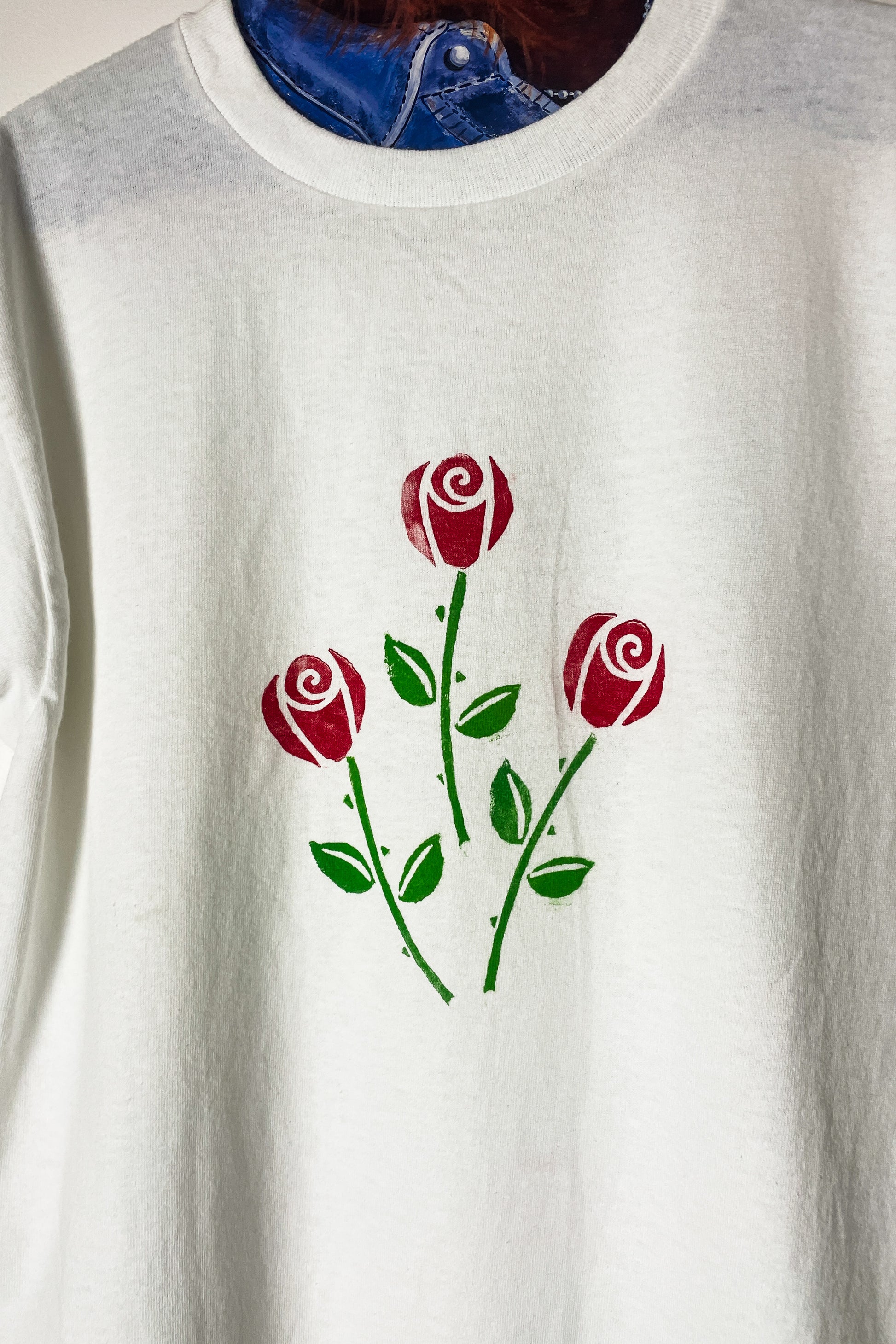 Basic unisex Gildan tee. Block printed with a hand carved Lino cut design. Slightly cropped.